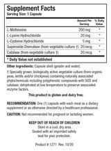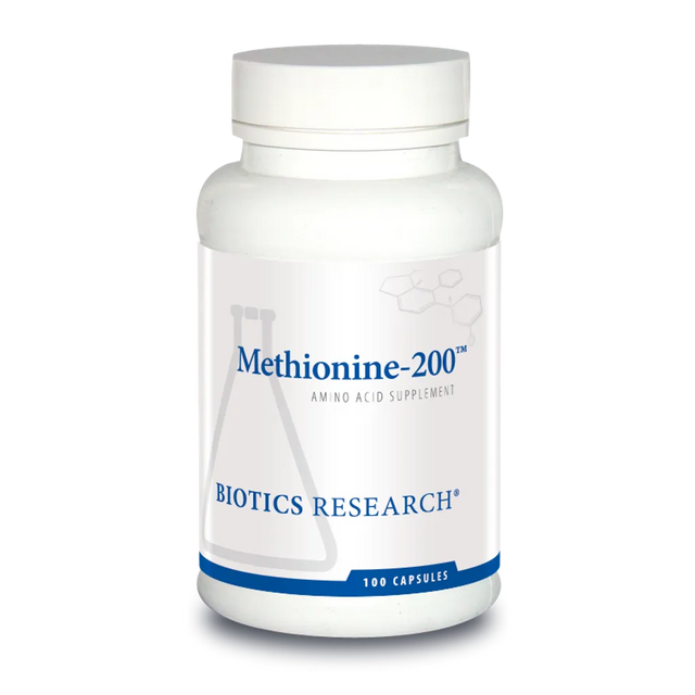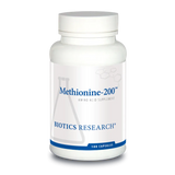 Methionine-200 provides a supplemental source of the sulphur-bearing amino acids Methionine, Lysine and Cysteine. L-Methionine is essential for human health, and in addition to being a sulfur containing amino acid, it also functions as a methyl donor, giving off a methyl group as needed for a variety of chemical and metabolic reactions in the body. In the liver methionine is converted into SAMe (S-adenosyl methionine). Strict vegetarians or persons on a low protein diet may need additional methionine in their diet. Additionally, advanced age is associated with a loss of methionine sulfoxide reductase activities in a number of tissues, thus with advancing age a supplemental source of Methionine may be required. Methionine and cysteine protein residues are particularly sensitive to oxidation by ROS, which is also impacted by age.