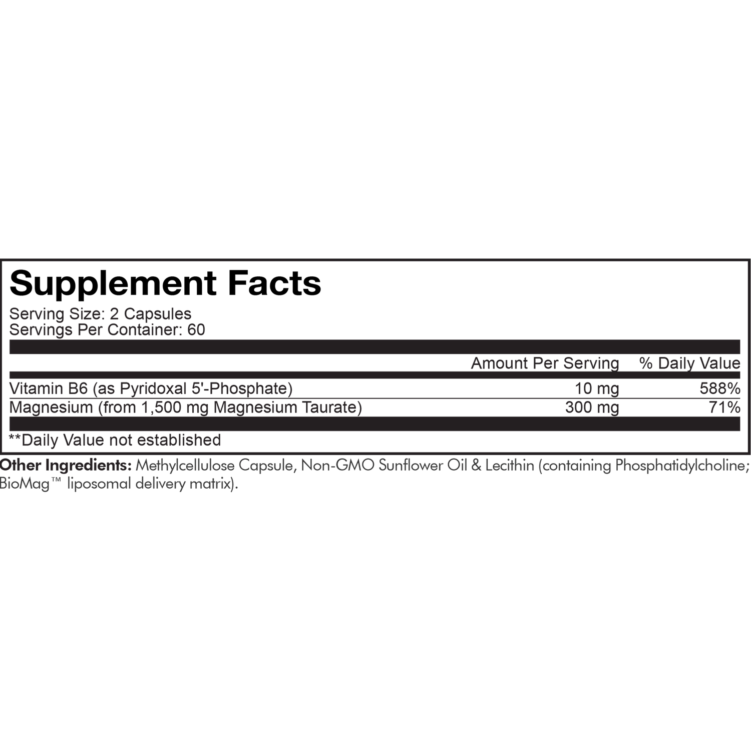 Harness the power of magnesium taurate and vitamin B6 for stress relief, enhanced energy, and peak performance support.* Liposomal delivery to promote absorption and maximize results. 2-month supply.