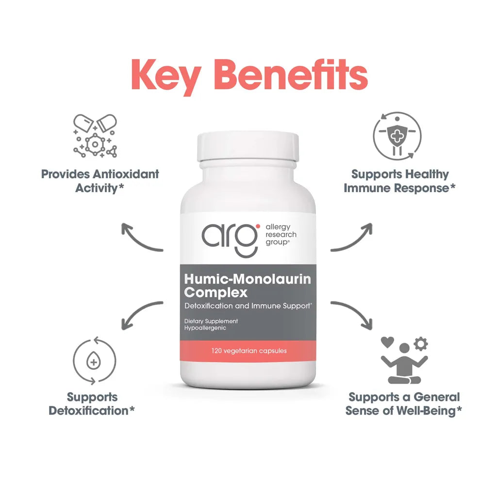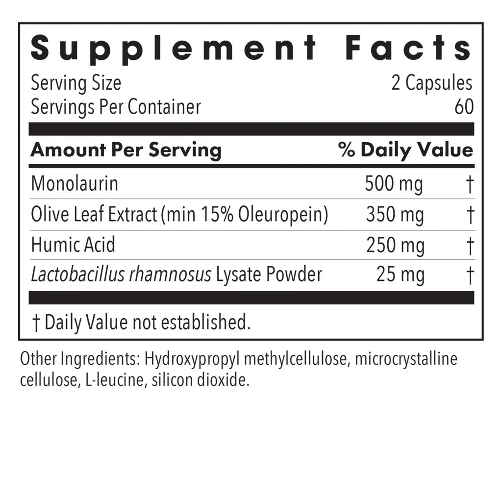 Humic-Monolaurin Complex combines a specially extracted and purified humic acid with monolaurin, olive leaf extract, and Lactobacillus rhamnosus cell wall fragments (Russian Choice Immune).