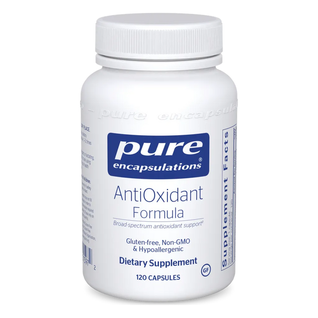 Free radicals are atoms, ions, or molecules with one or more unpaired electrons that bind to and destroy cellular compounds. Dietary antioxidants disarm free radicals through a number of different mechanisms. Foremost, they bind to the free electrons, ‘pairing up’ with them, creating an innocuous cellular compound that the body can eliminate as waste. The antioxidants in this formula also support the body’s natural defense mechanisms against free radicals: the enzymes superoxide dismutase, catalase, and glutathione peroxidase. Research points to the fact that a synergistic combination of antioxidants is more effective than the total effect of each antioxidant taken alone.