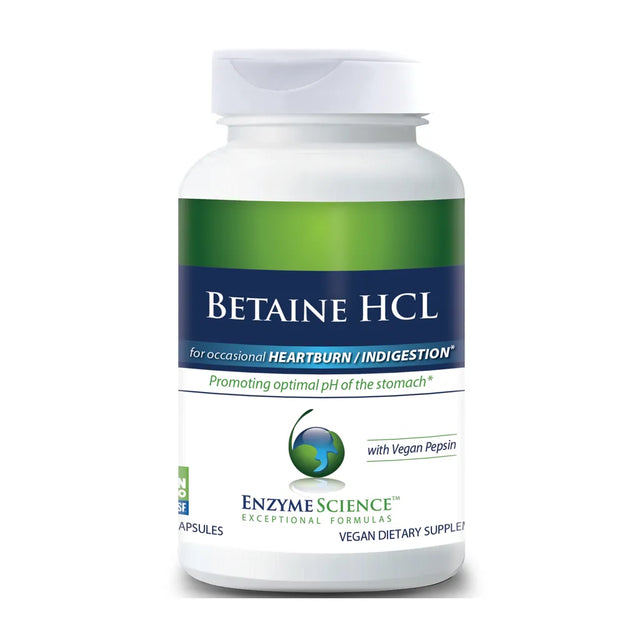 Hydrochloric acid is produced by the stomach to create an environment conducive to optimal digestion. As part of the normal aging process, the production of HCI declines, impacting protein degradation. Betaine HCI provides a combination of HCI and vegan pepsin (Acid Stable Protease) to optimize stomach conditions and maximize digestion in those with lower levels of stomach acid.