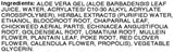 Ingredients: Aloe vera gel (aloe barbadensis leaf juice, water, acrylates/C10-30 alkylacrylate crosspolymer), herbal extracts (purified water, ethanol, bloodroot root, chaparral leaf, chickweed aerial parts, echinacea angustifolia root, goldenseal root, lomatium root, mullein flower, plantain leaf, poke root, red clover flower, calendula flower, propolis), vegetable glycerin.
