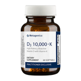 D3 10,000 + K by Metagenics - High Potency, Bioactive Vitamin D with Vitamin K. Provides 10,000 IU per softgel of vitamin D (as D3), designed for greater absorption. This high potency formula also includes bioavailable forms of vitamin K2 to complement vitamin D.
