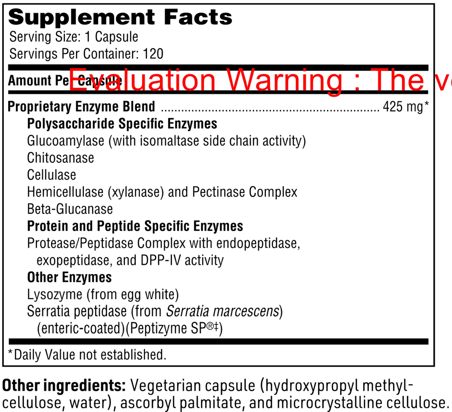 | Proprietary Enzyme Blend: | 425 mg |