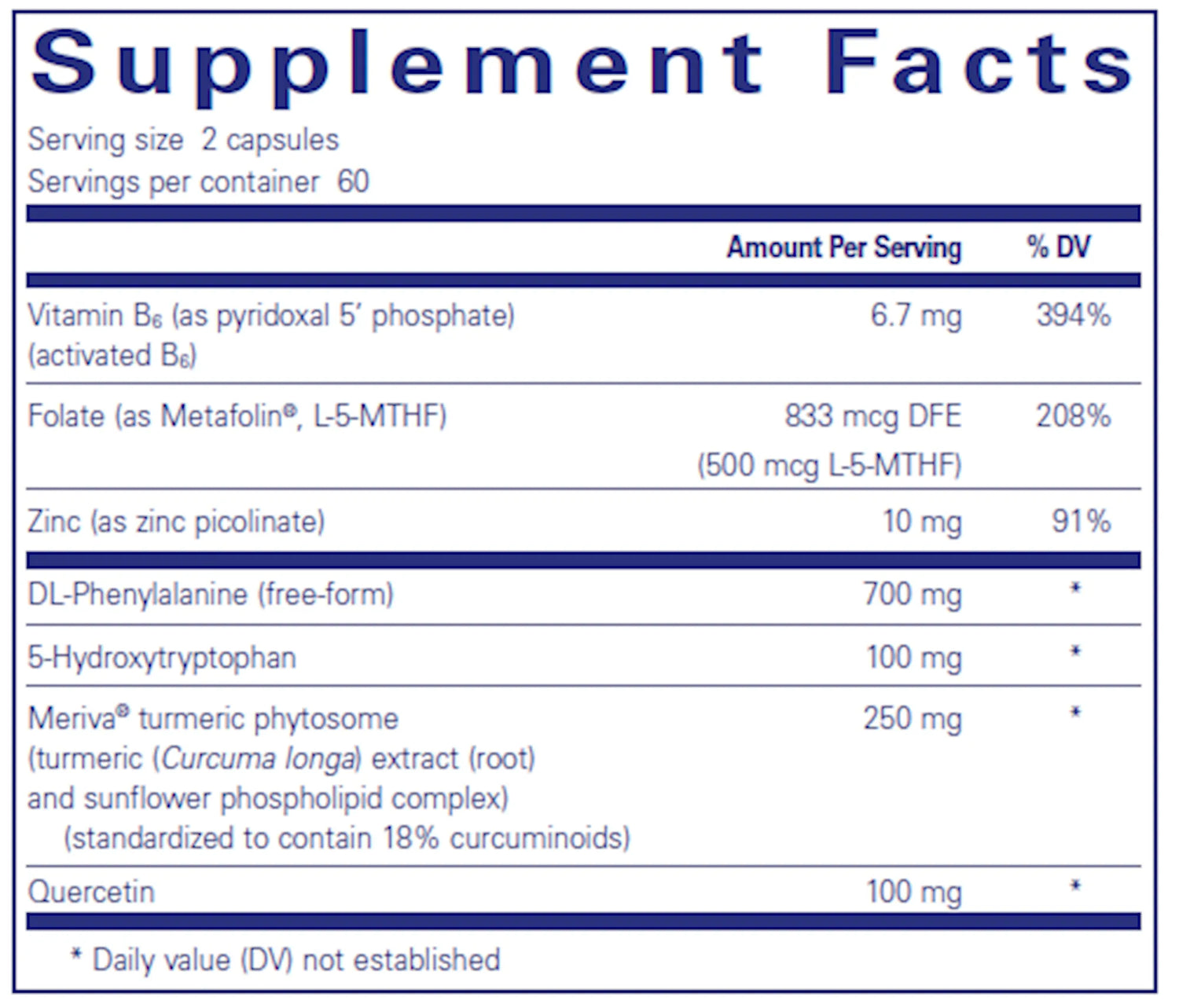 - Contains the cofactors vitamin B6, Metafolin® L-5-MTHF and zinc to support neurotransmitter production