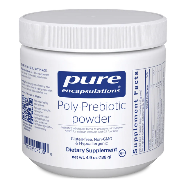 - Blend of researched prebiotics and polyphenols with prebiotic effects