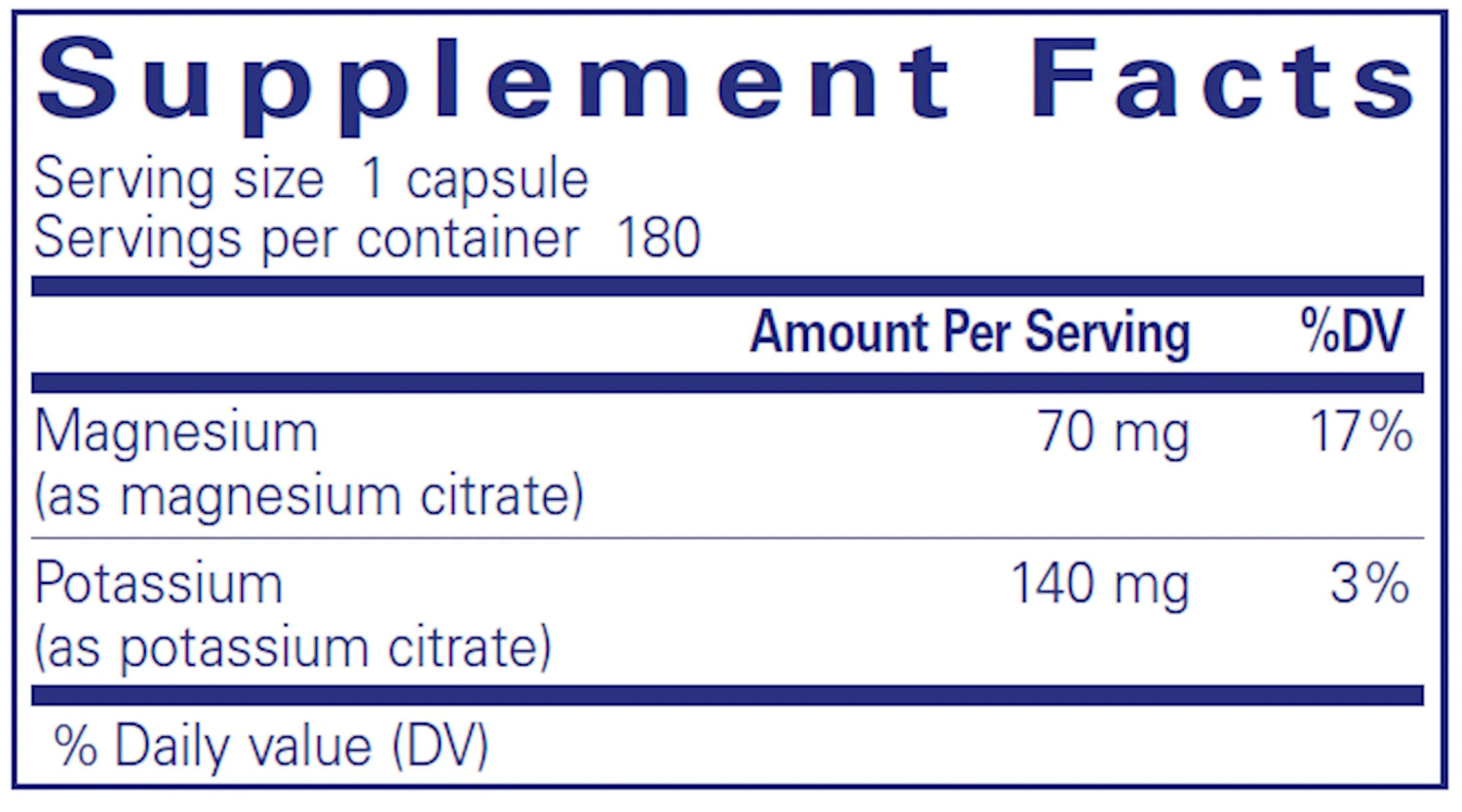 Potassium and magnesium are both essential for healthy nerve impulse function, muscle contraction, cardiovascular function, acid/alkaline balance, and carbohydrate and nutrient metabolism. Magnesium also plays an important role in facilitating potassium utilization, helping to provide optimal support.