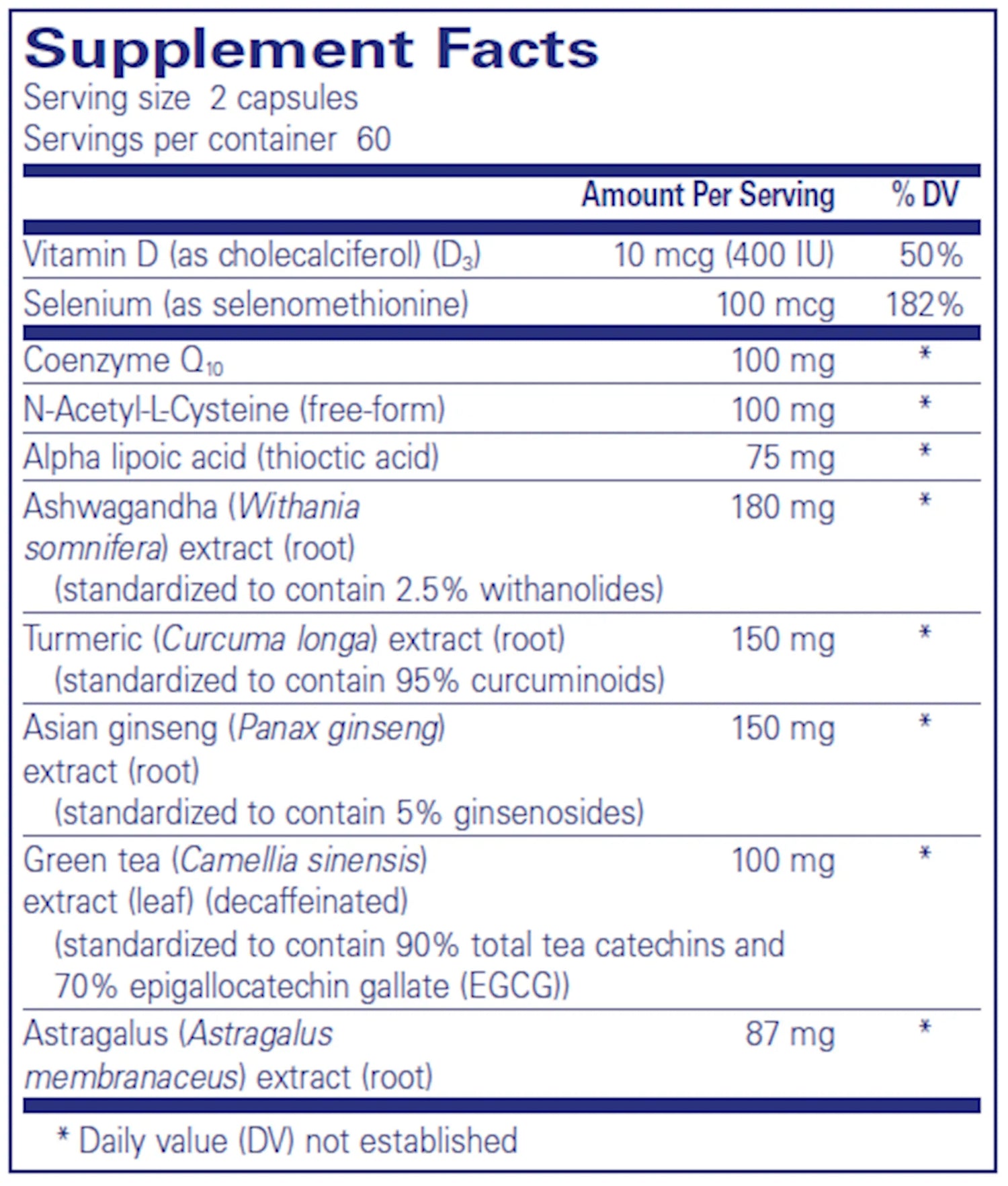 Advanced antioxidant and adaptogen cellular health formula; maintains healthy cell function and protects healthy tissue.