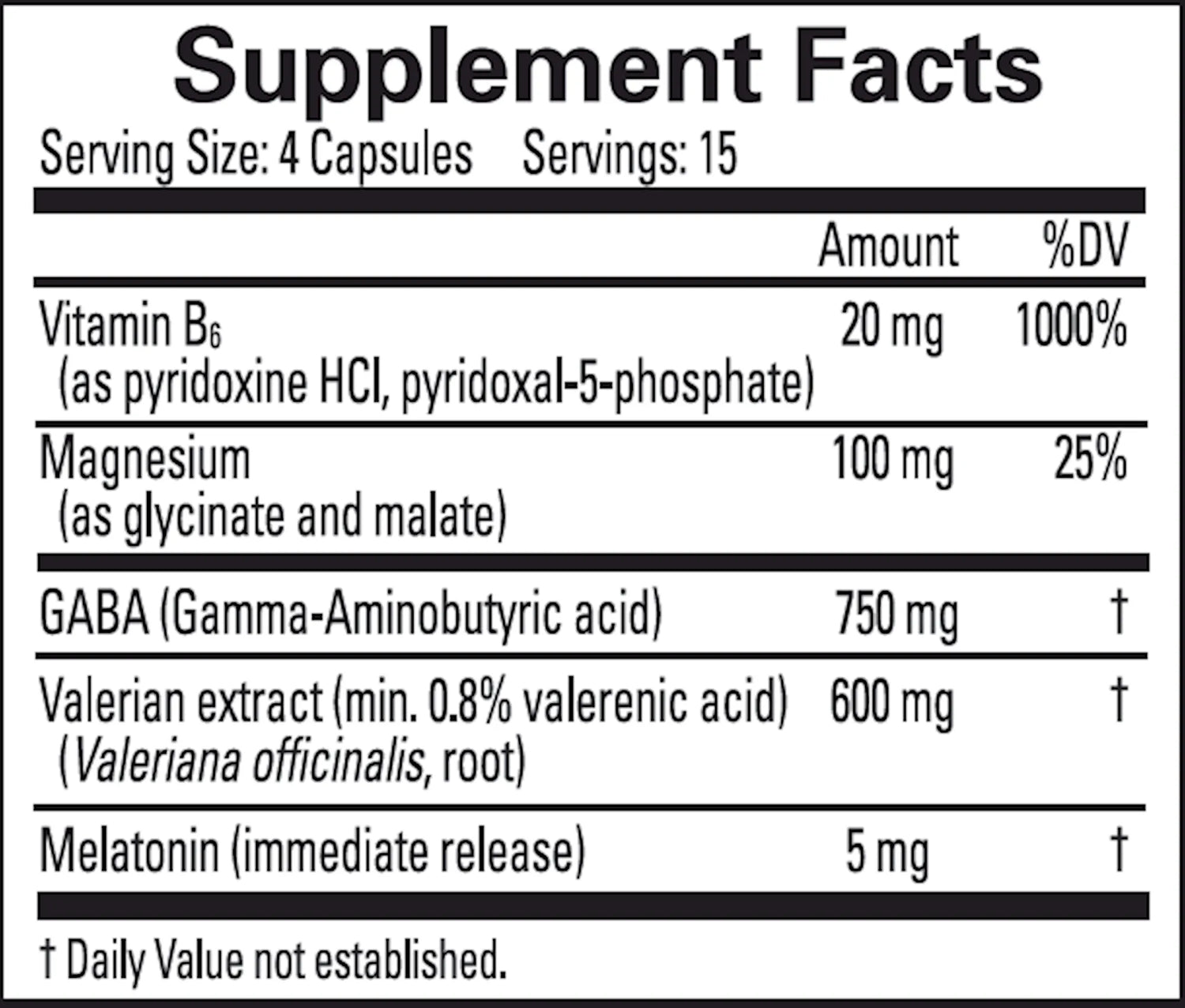 | GABA (gamma-aminobutyric acid) | 750 mg |