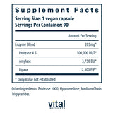 Vital Nutrients Vegan Pancreatic Enzymes provide lactose-free, dairy-free, gluten-free, vegan digestive enzymes. They feature a complete blend of highly-active protease, lipase, and amylase enzymes that work synergistically, over a broad pH range. Their activity begins in the stomach and continues all the way through the small intestine for complete digestive support.*